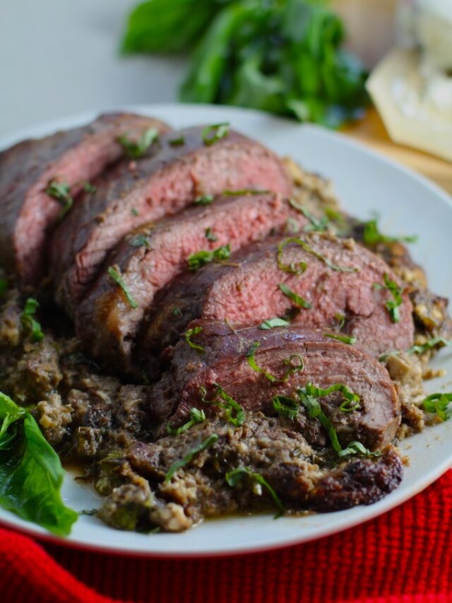 Easy to prepare ahead of time/ Is an impressive dish for the holidays but perfect for dinner during the week. The steak is so tender and the stuffing mixture is oozing with flavor.