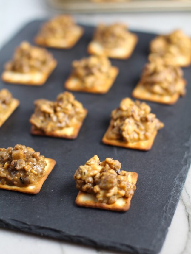 EITHER BAKE THEM IN THE OVEN AND SERVE OR YOU CAN FREEZE YOUR MEAT COVERED CRACKERS UNTIL YOU'RE READY TO SHARE THEM. THEN HEAT THEM IN THE OVEN!
