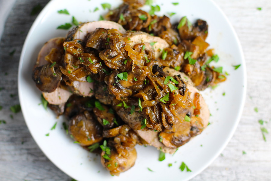Caramelized onions and mushrooms add so much flavor to pork. You can use beef or chicken with this recipe and achieve a delicious outcome. It's easy to prepare the onions and mushrooms ahead of time . This recipe will impress any dinner guests.