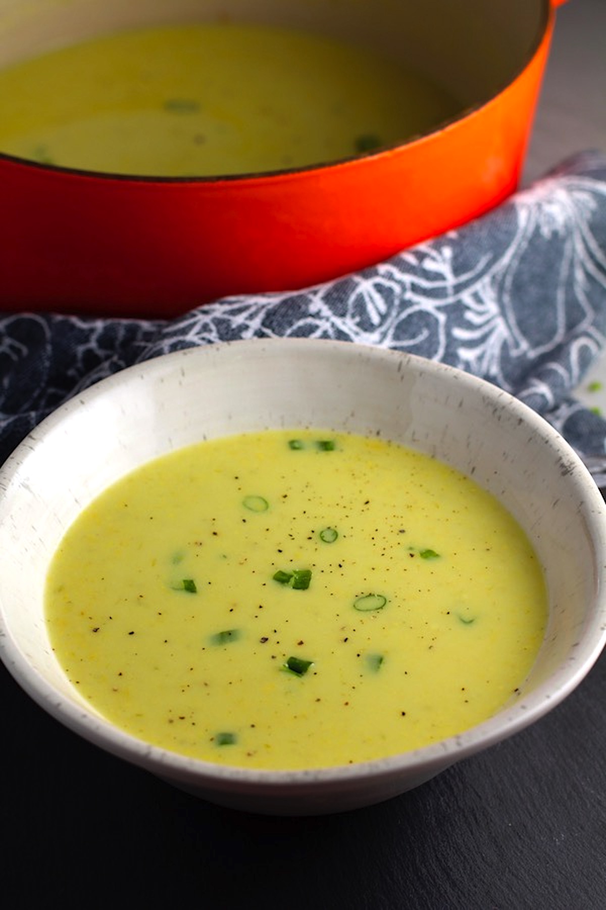The soup uses fresh corn so you can make a wonderful corn stock from the husks, scrape all of that natural corn cream out, and enjoy the fresh and sweet corn kernels.